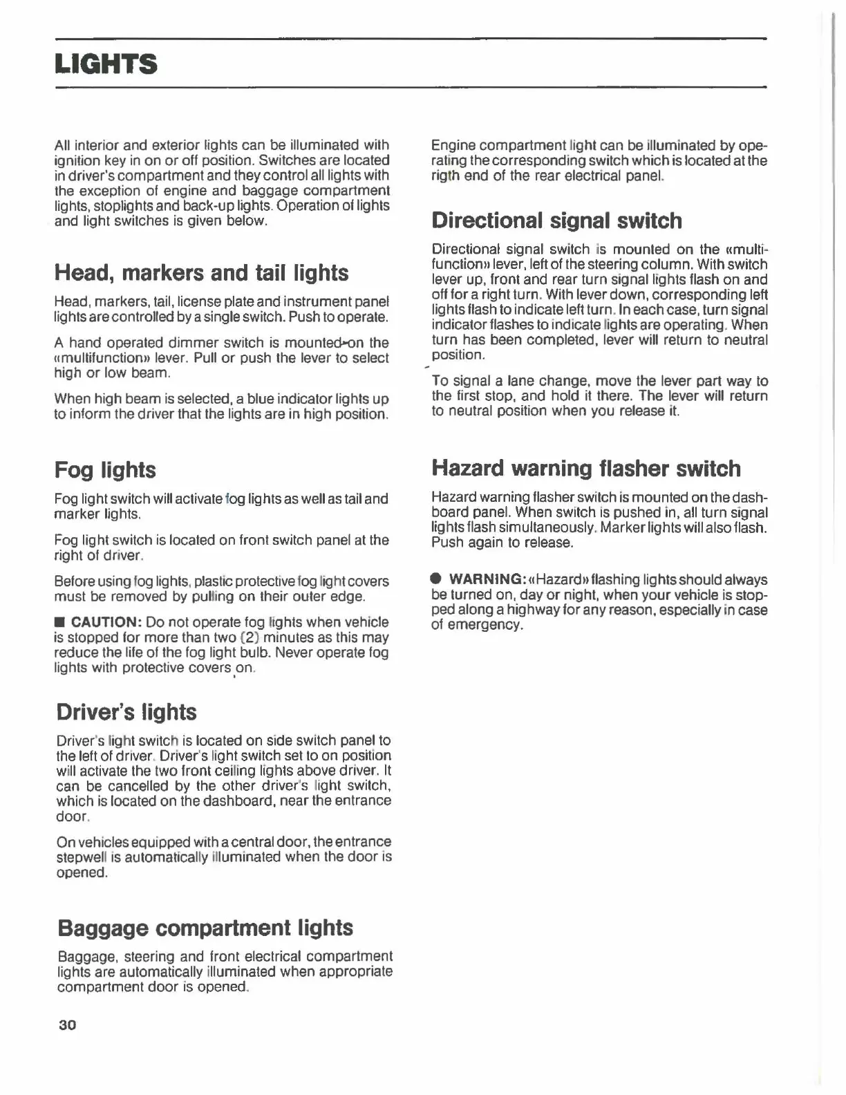 lights, stoplights and back-up lights. Operation of lights