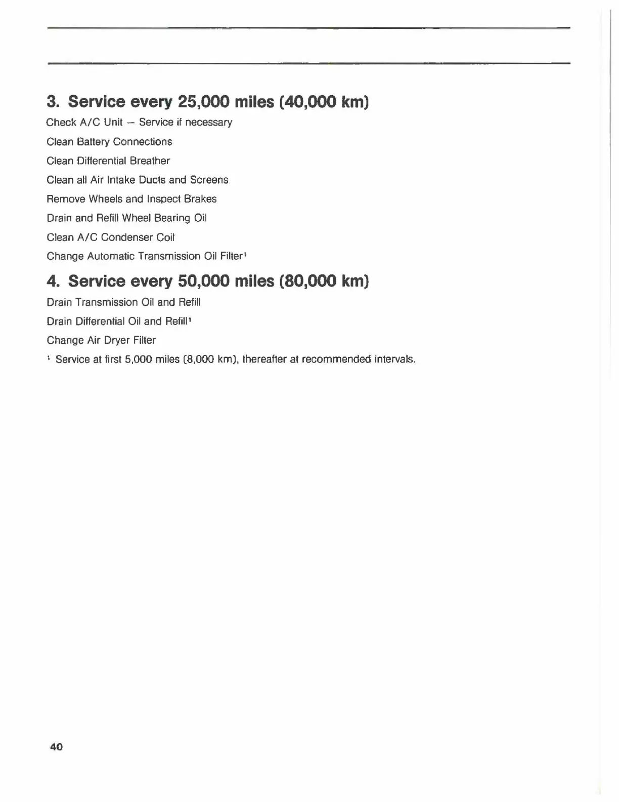 Service every 25,000 miles ( 40,000