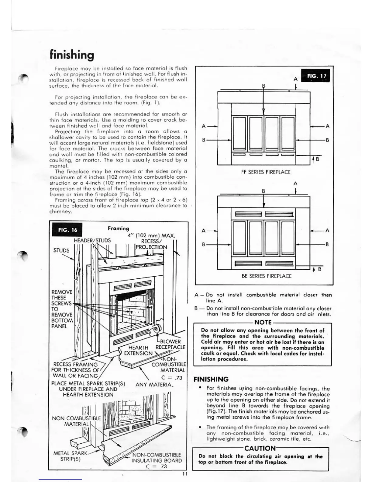 Preway BE41 - Fireplace Finishing and Framing; Fireplace Face Material and Installation; Fireplace Framing and Clearance Maintenance