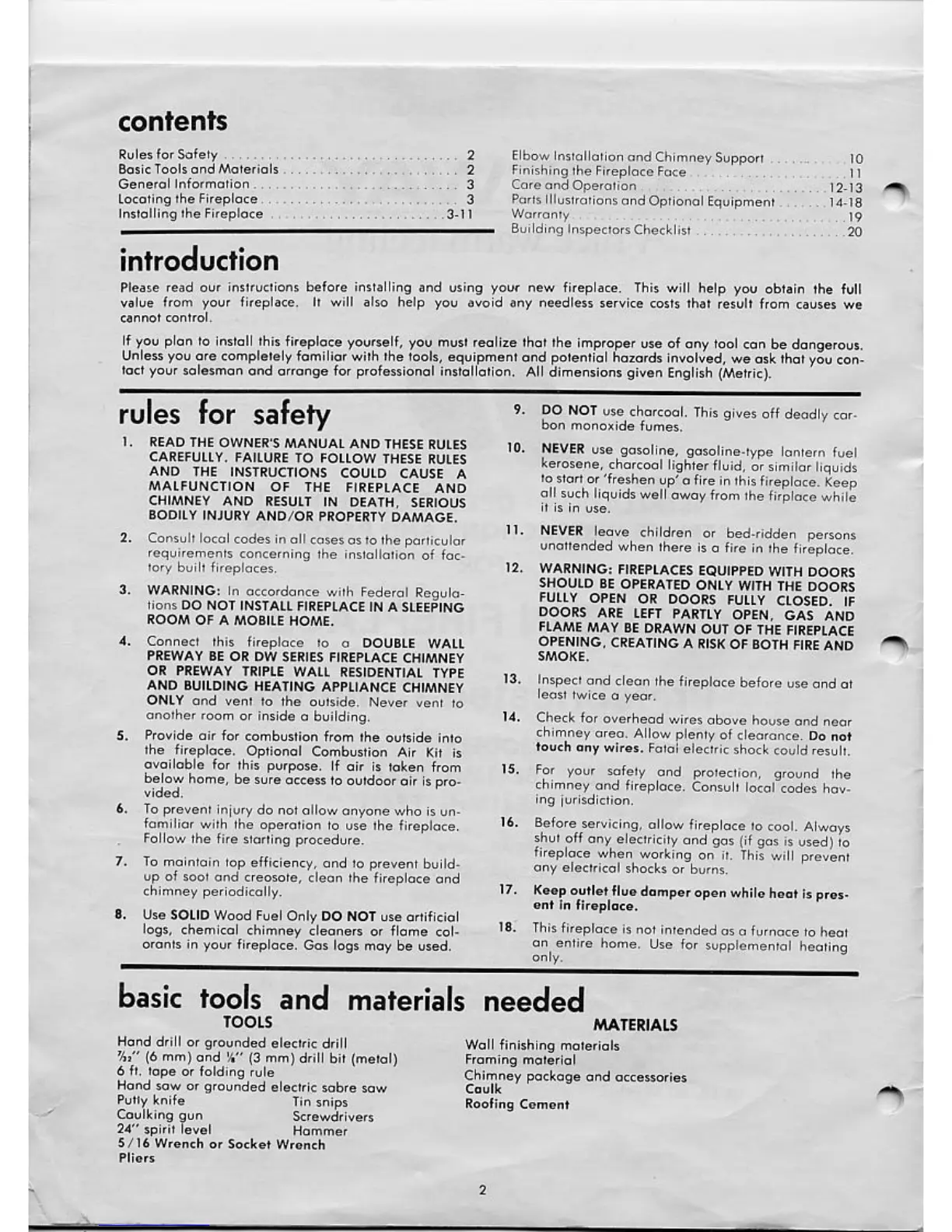 Preway BE41 - Contents; Safety Rules; Basic Tools and Materials Needed