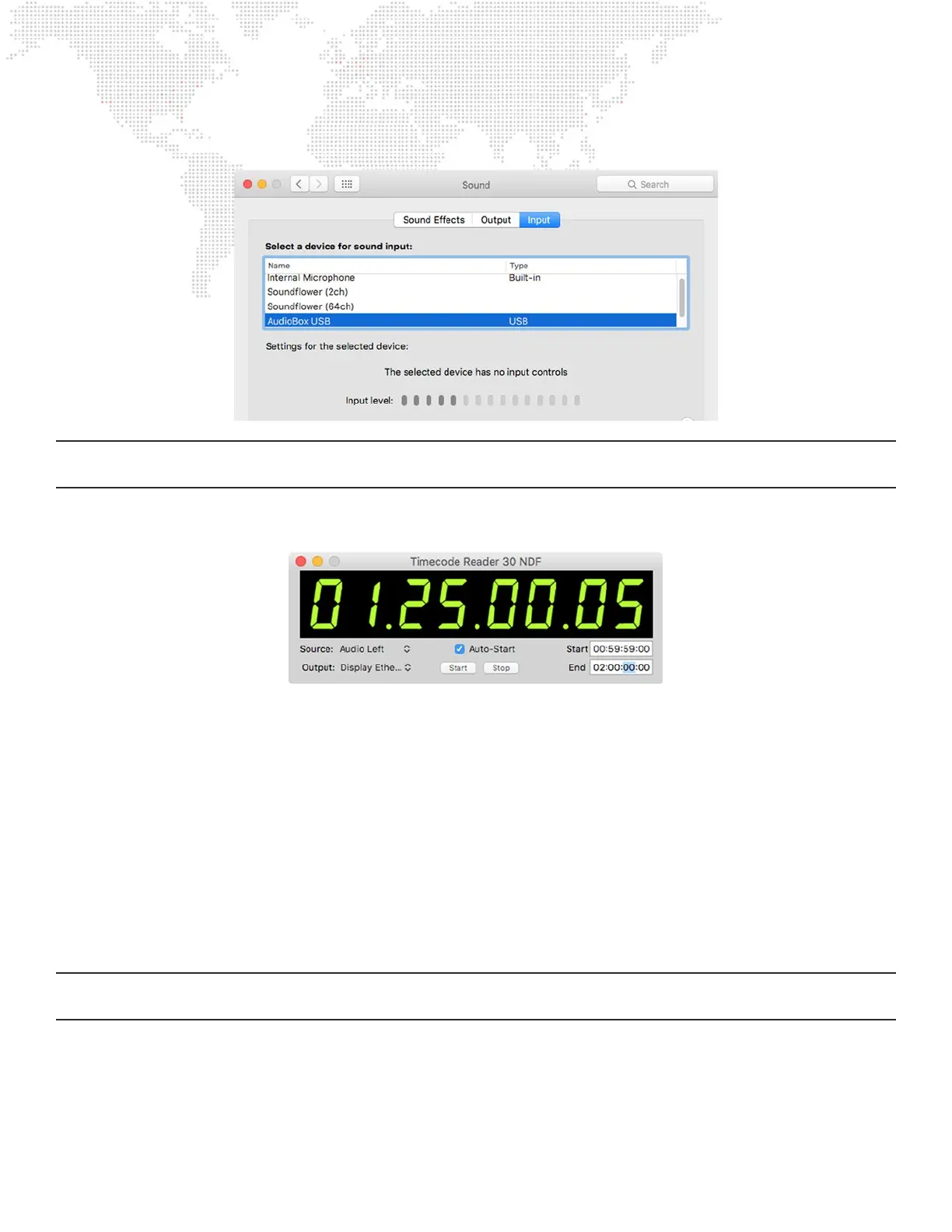Depending on the source setting, the application will immediately begin generating or listening for external timecode.