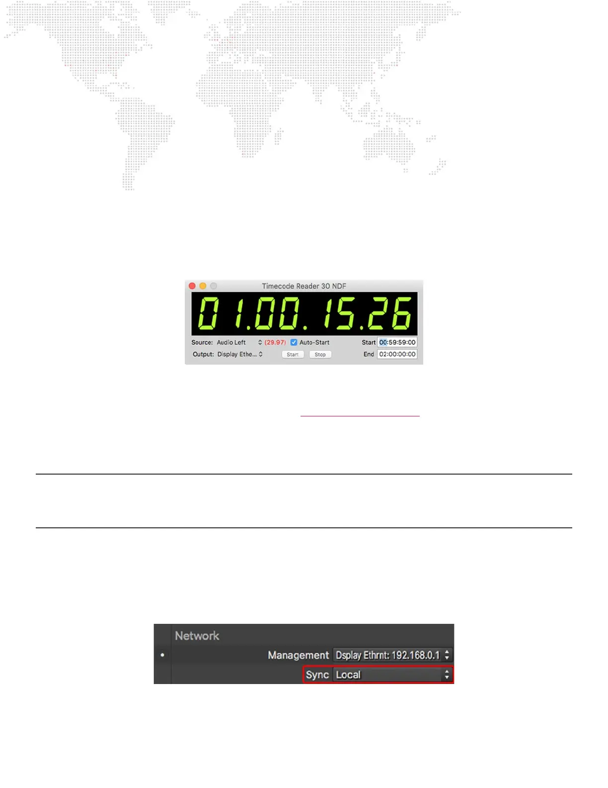 + Since TC Reader retransmits the timecode data via Ethernet, a timecode source can be connected to any computer