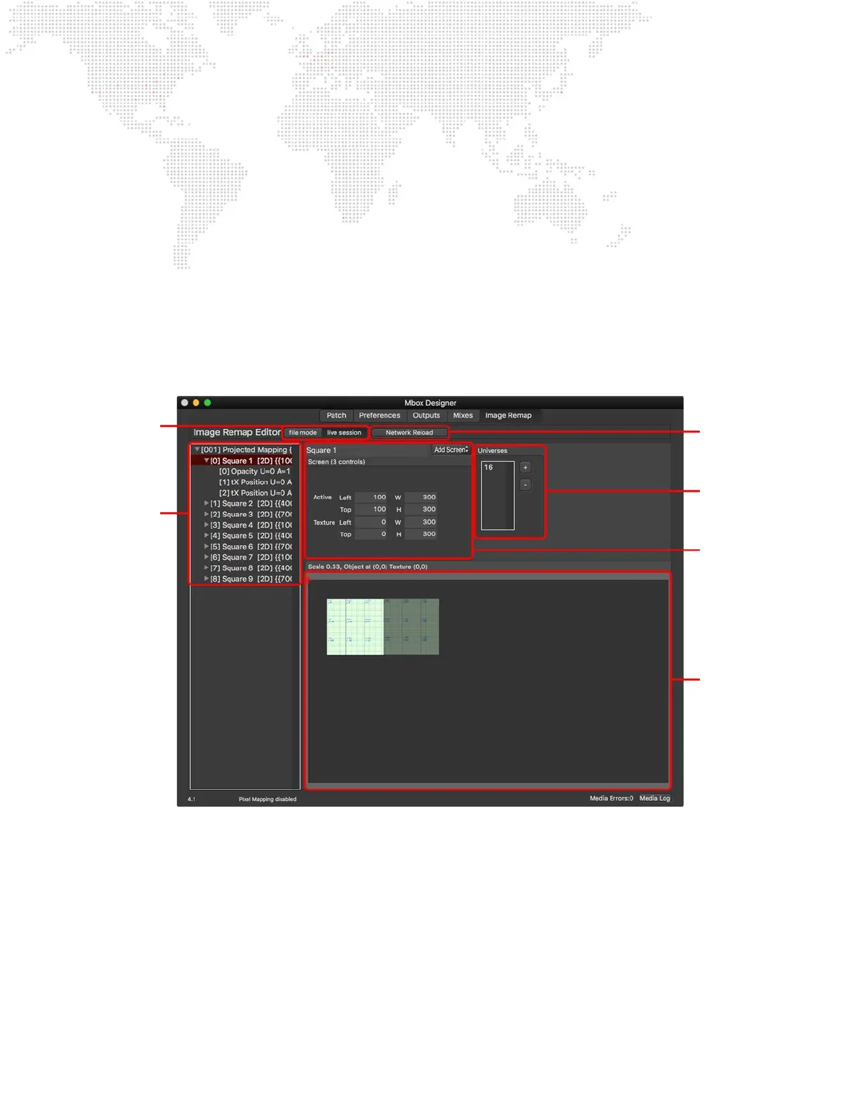 The illustration below shows the user interface of the Image Remap tab of the Mbox application. This is the same as the