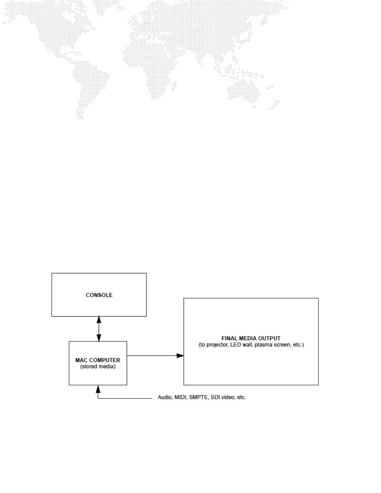 This manual assumes that a lighting console is being used to control the Mbox software. For instructions on using Mbox