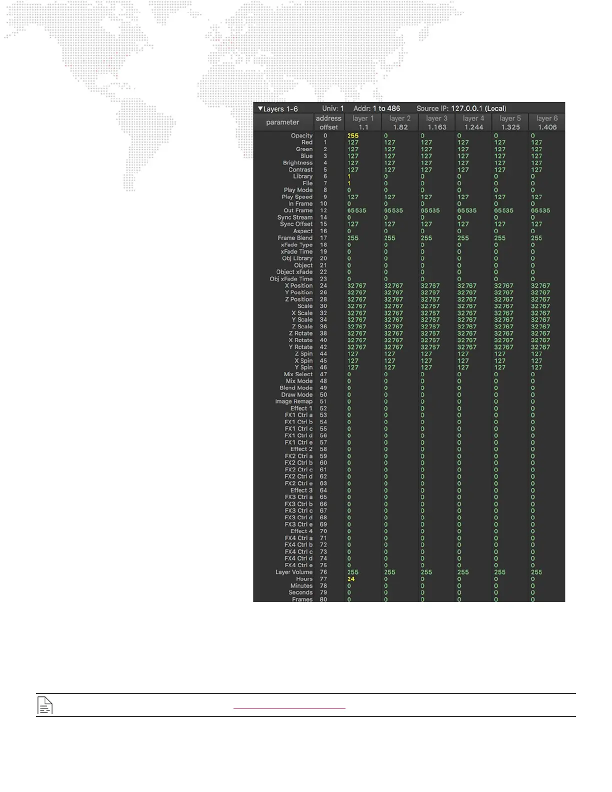 For complete parameter maps, refer to “Fixture Parameter Data” on page 182.