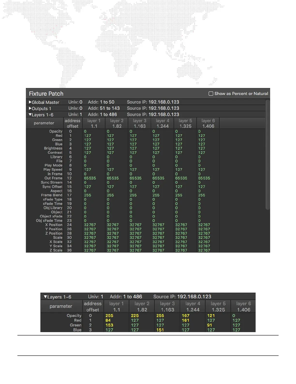 The patch table will also show the current received value for every parameter if the Mbox application is receiving Art-Net/