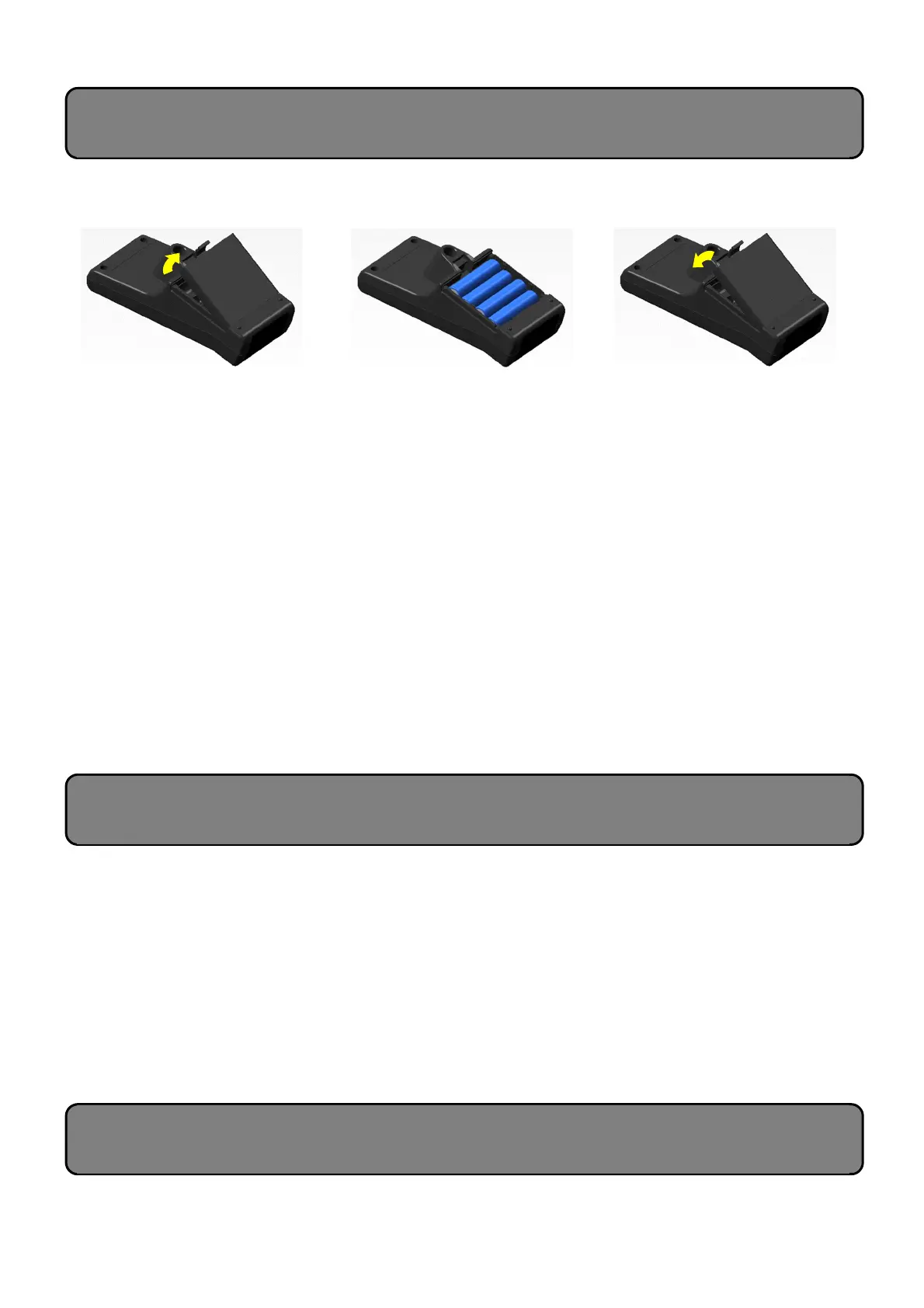 (2) Insert the batteries. (3) Close the cover.