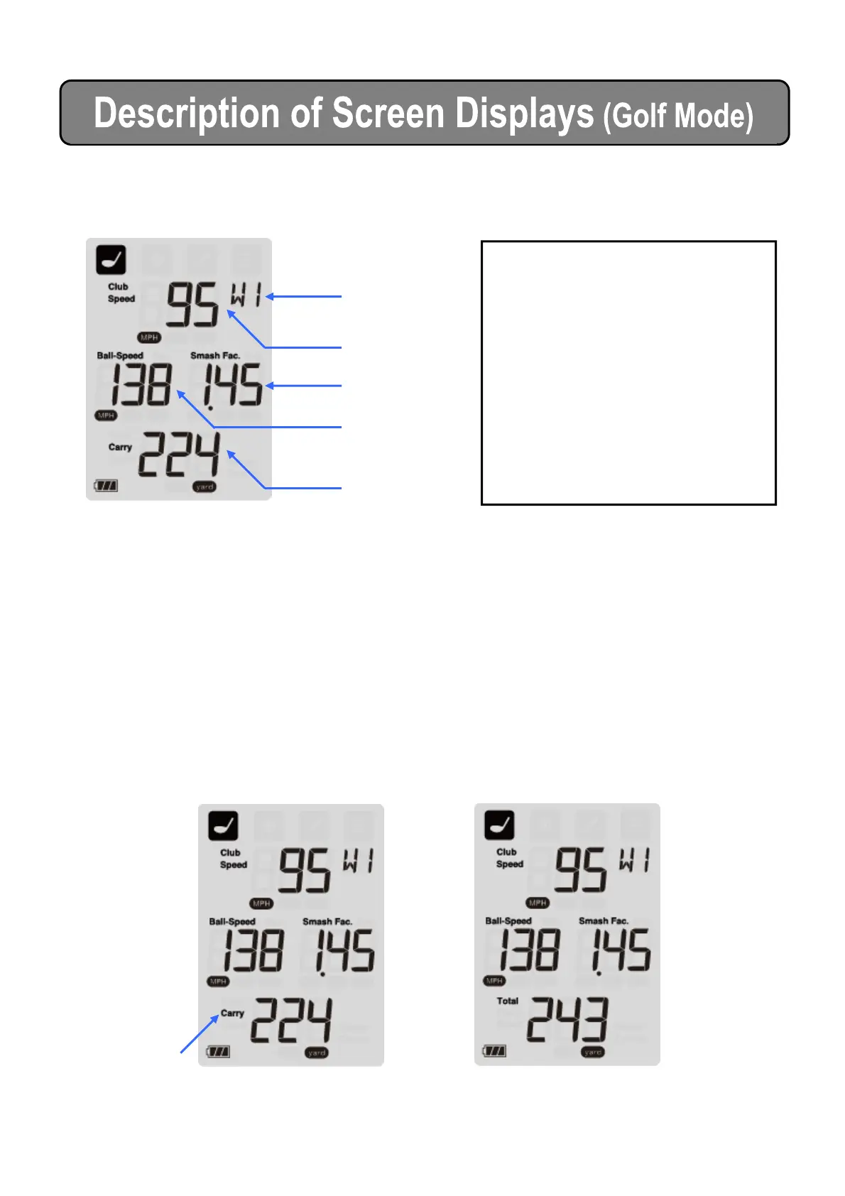 The display for estimated flight distance can be switched between “Carry” and “Total” by quickly