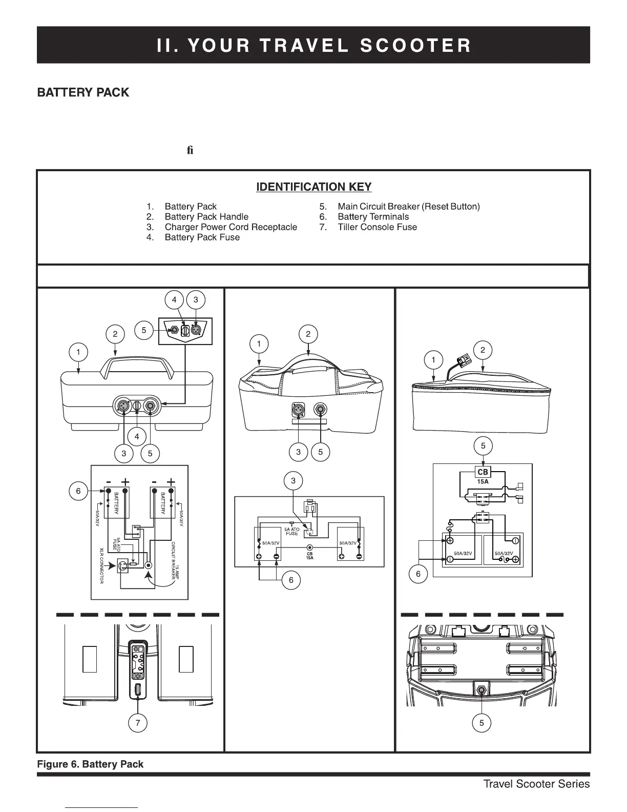 battery pack makes it easy to lift the pack off of the Travel Scooter with one hand. The battery pack contains two