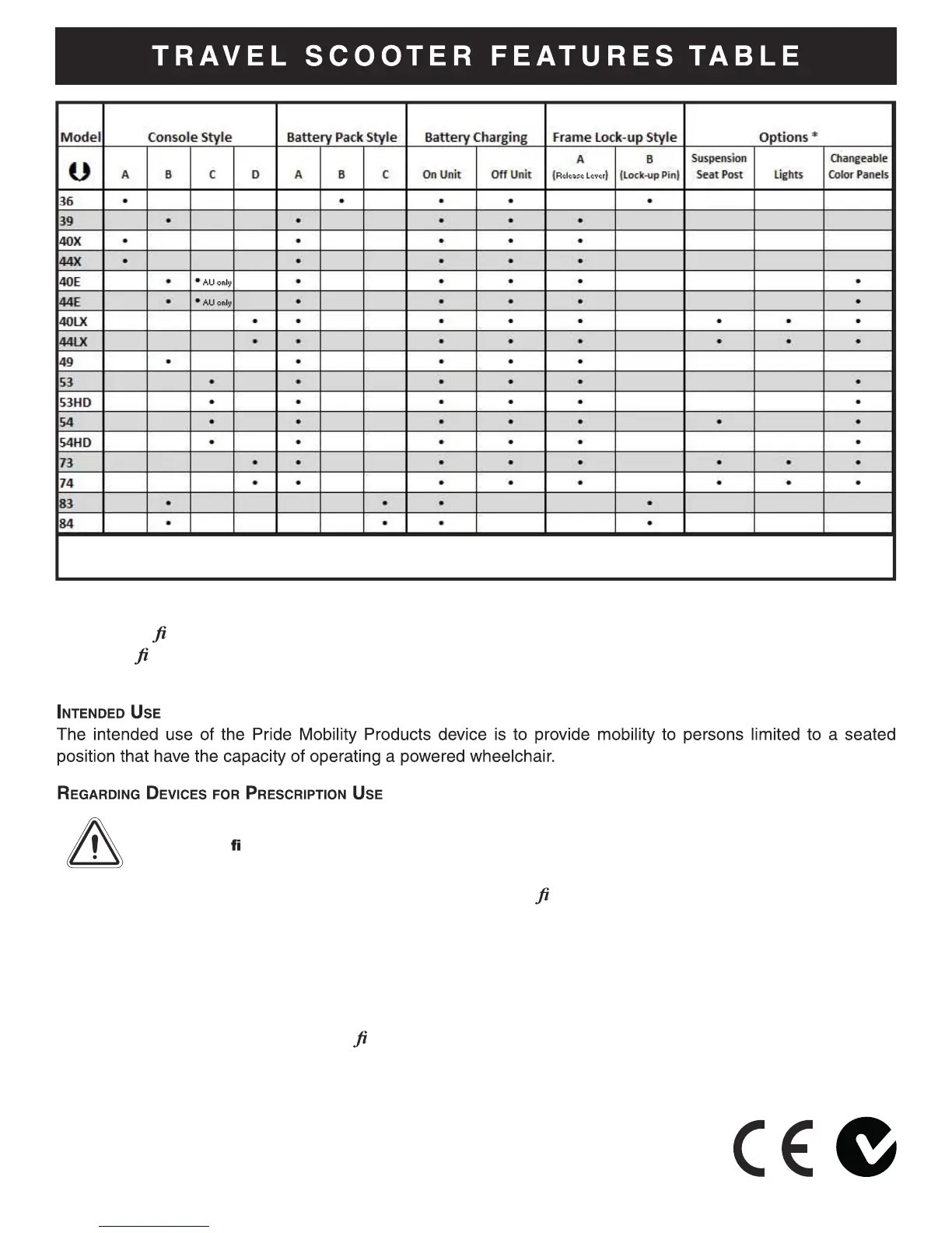 are indenti ed by model number (far left-hand column on Travel Scooter Features Table). Knowing your unit’s
