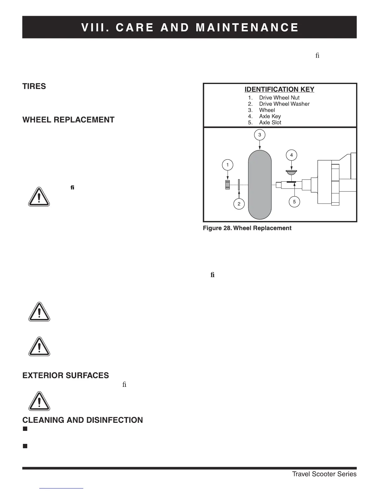 WARNING! Do not use a rubber or vinyl conditioner on the Travel Scooter’s vinyl seat or tire