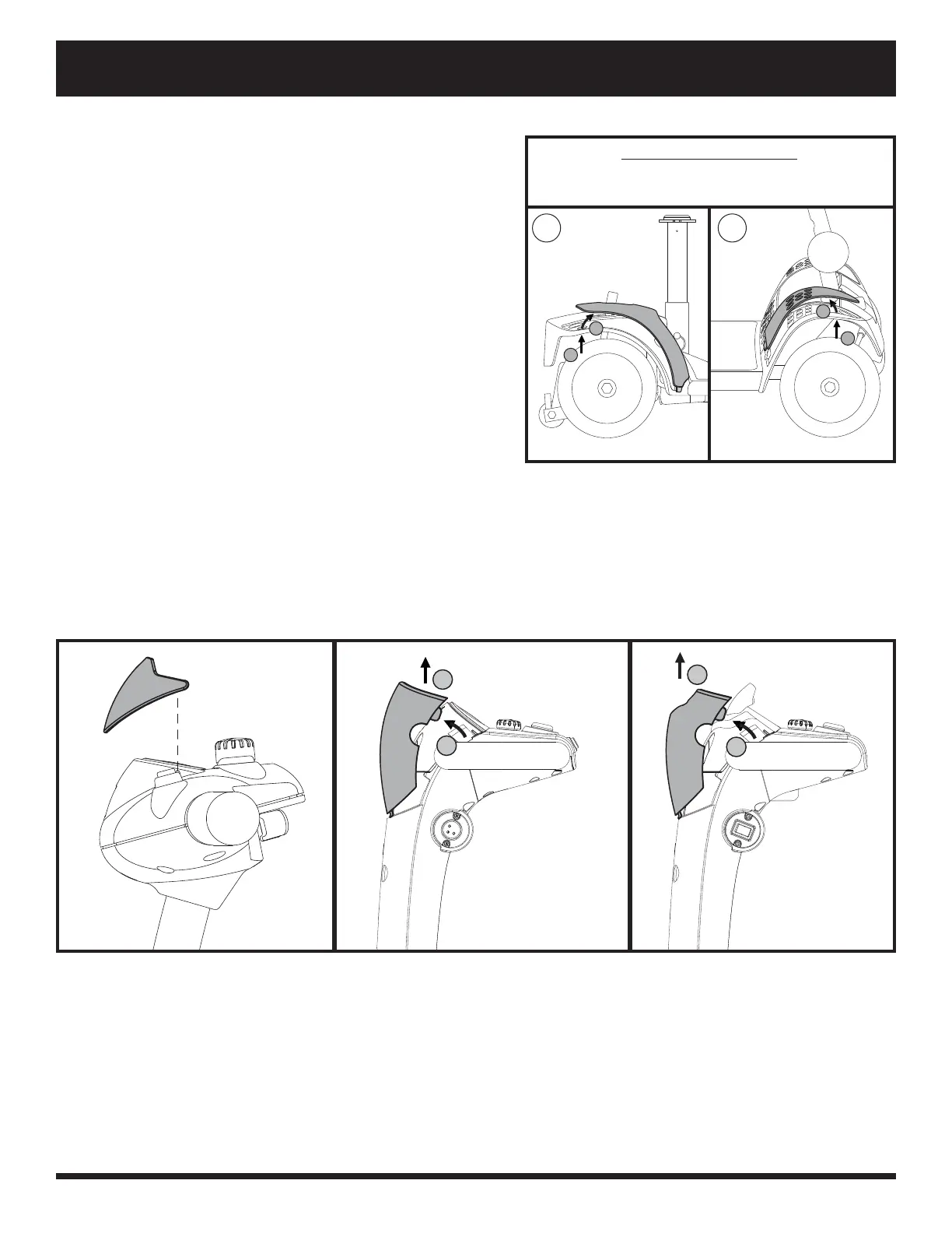 NOTE: When installing the front and rear fender panels, make sure the tab at the bottom of each panel is
