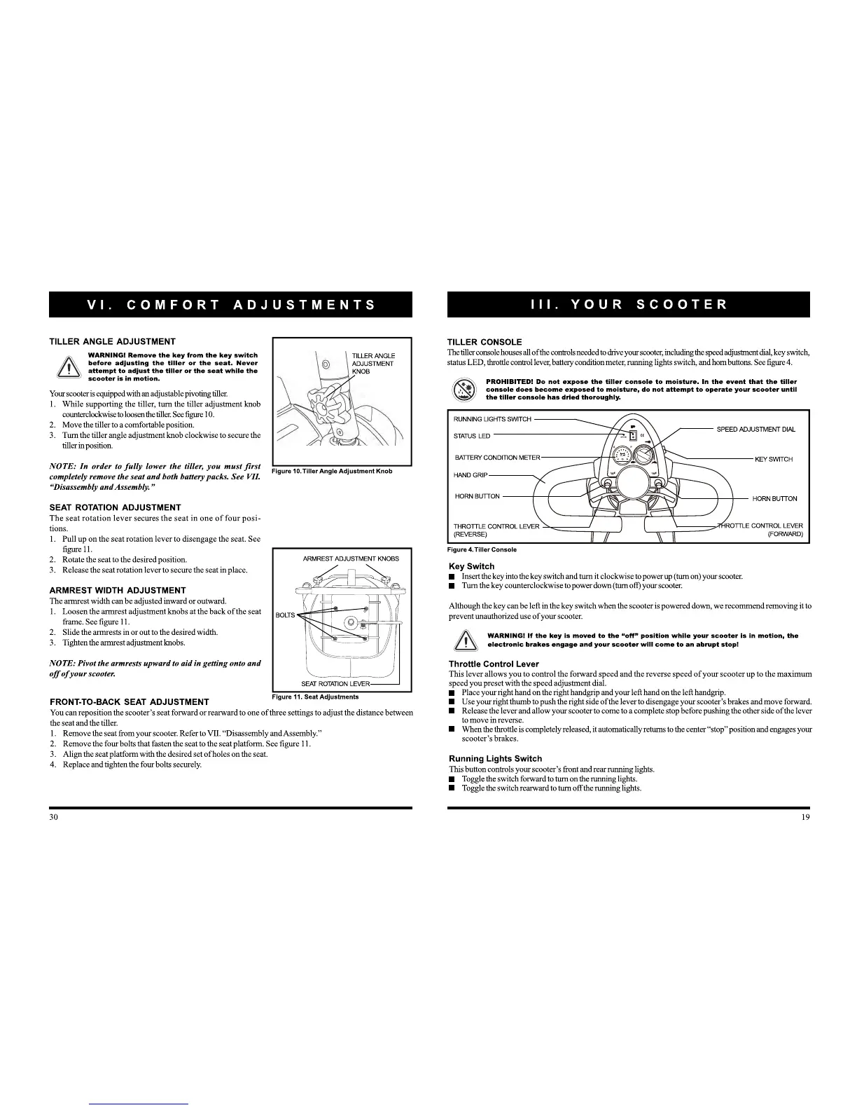 Pride Mobility Apex Sprint - Your Scooter; Tiller Angle Adjustment; Seat Rotation Adjustment; Armrest Width Adjustment