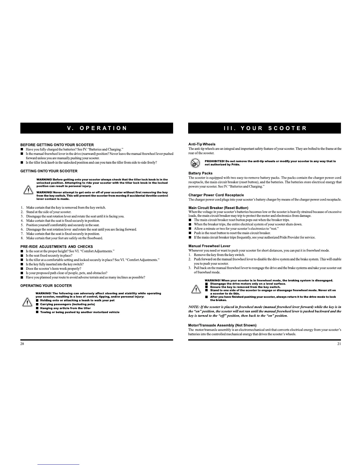 Pride Mobility Apex Sprint - Before Getting Onto Your Scooter; Getting Onto Your Scooter; Pre-Ride Adjustments and Checks; Operating Your Scooter