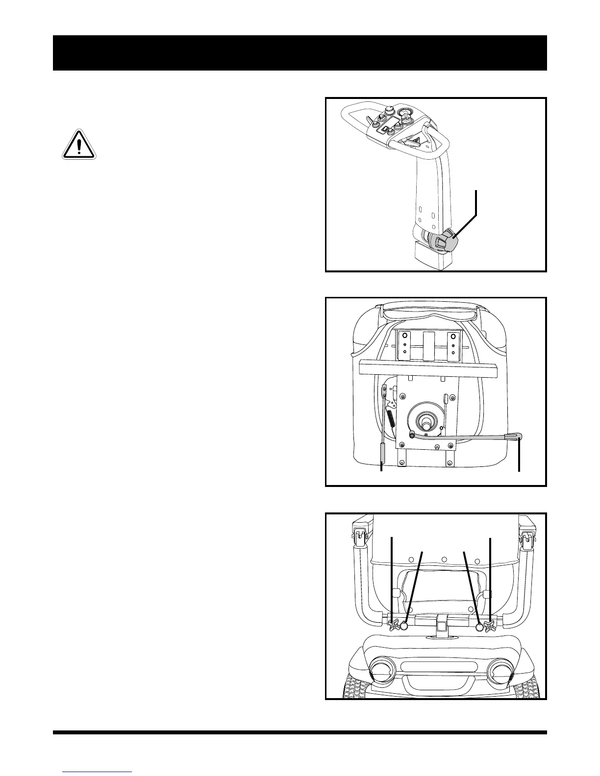 seat. Never attempt to adjust the tiller or