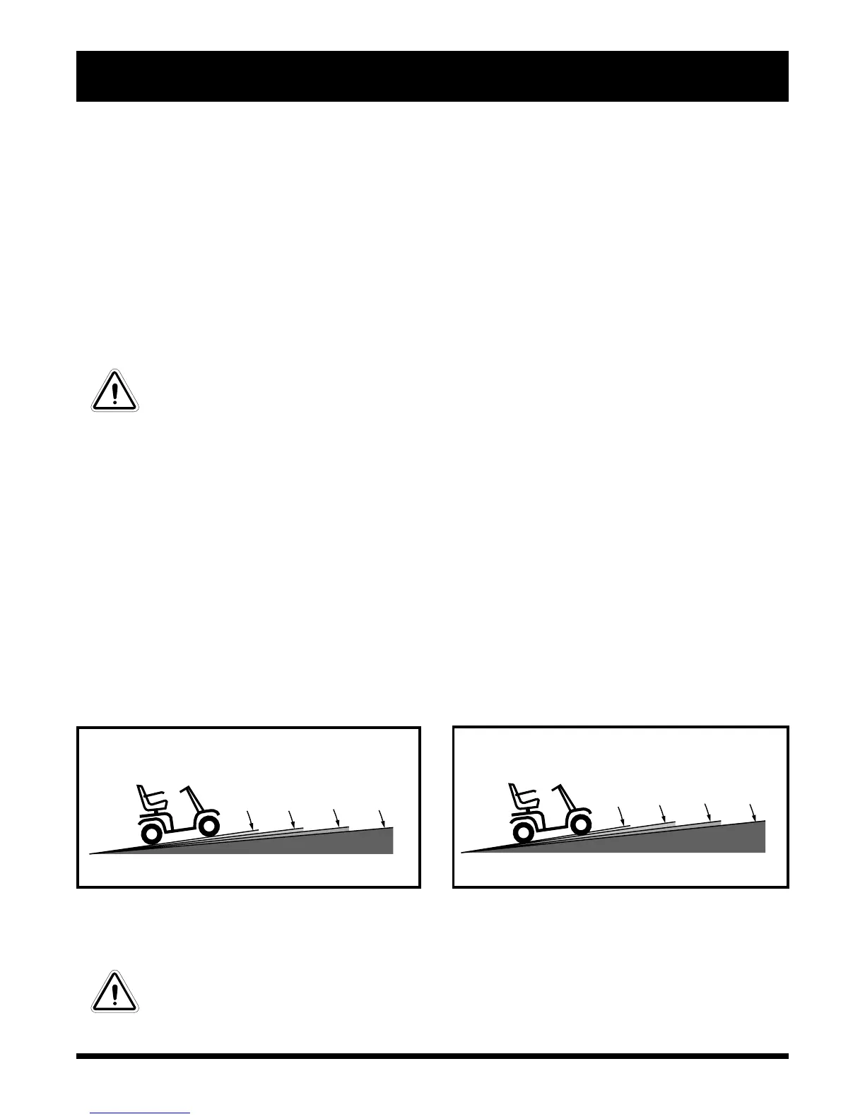 incline. Drive your scooter straight up the incline. This greatly reduces the possibility of a