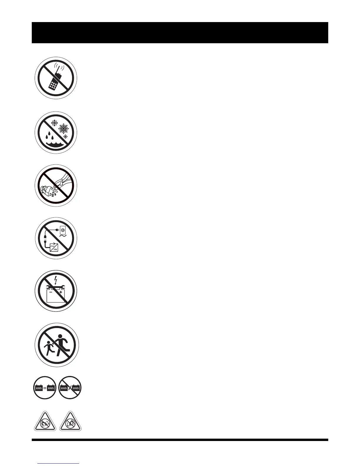 Do not use batteries with different amp-hour (Ah) capacities. Do not mix old and