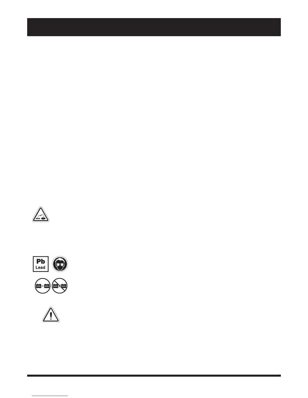 WARNING! Corrosive chemicals are contained in batteries. Use only AGM or Gel-Cell