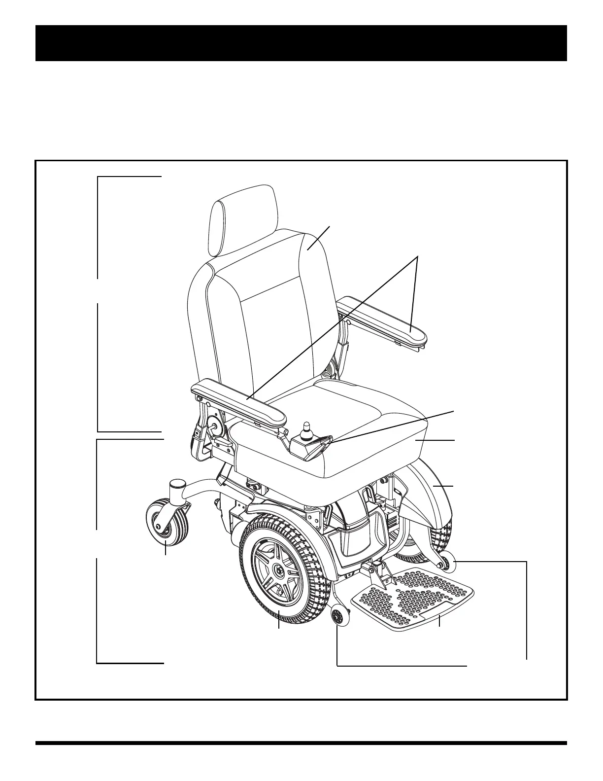 The Jazzy Elite Series Power Chair has two main assemblies: the seat assembly and the power base assembly. See