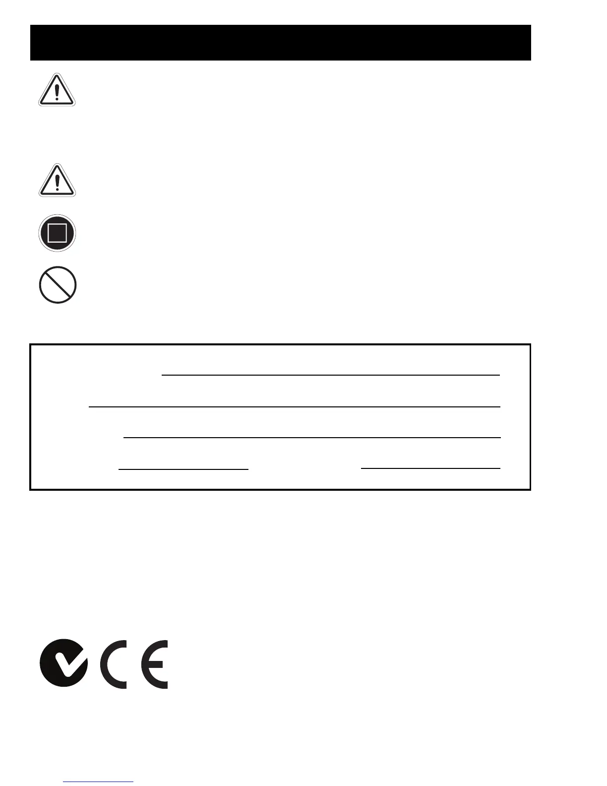 time or in any circumstances. Performing a prohibited action can cause personal injury