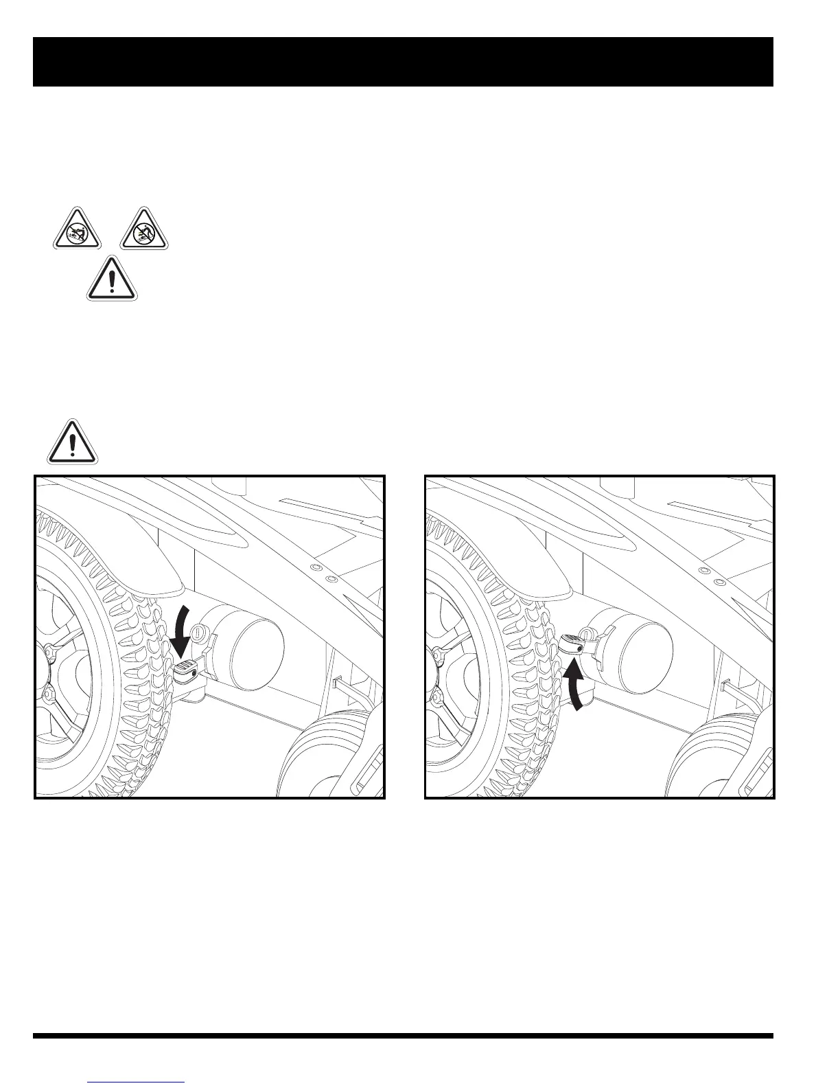 WARNING! Do not use the power chair while the drive motors are disengaged! Do not