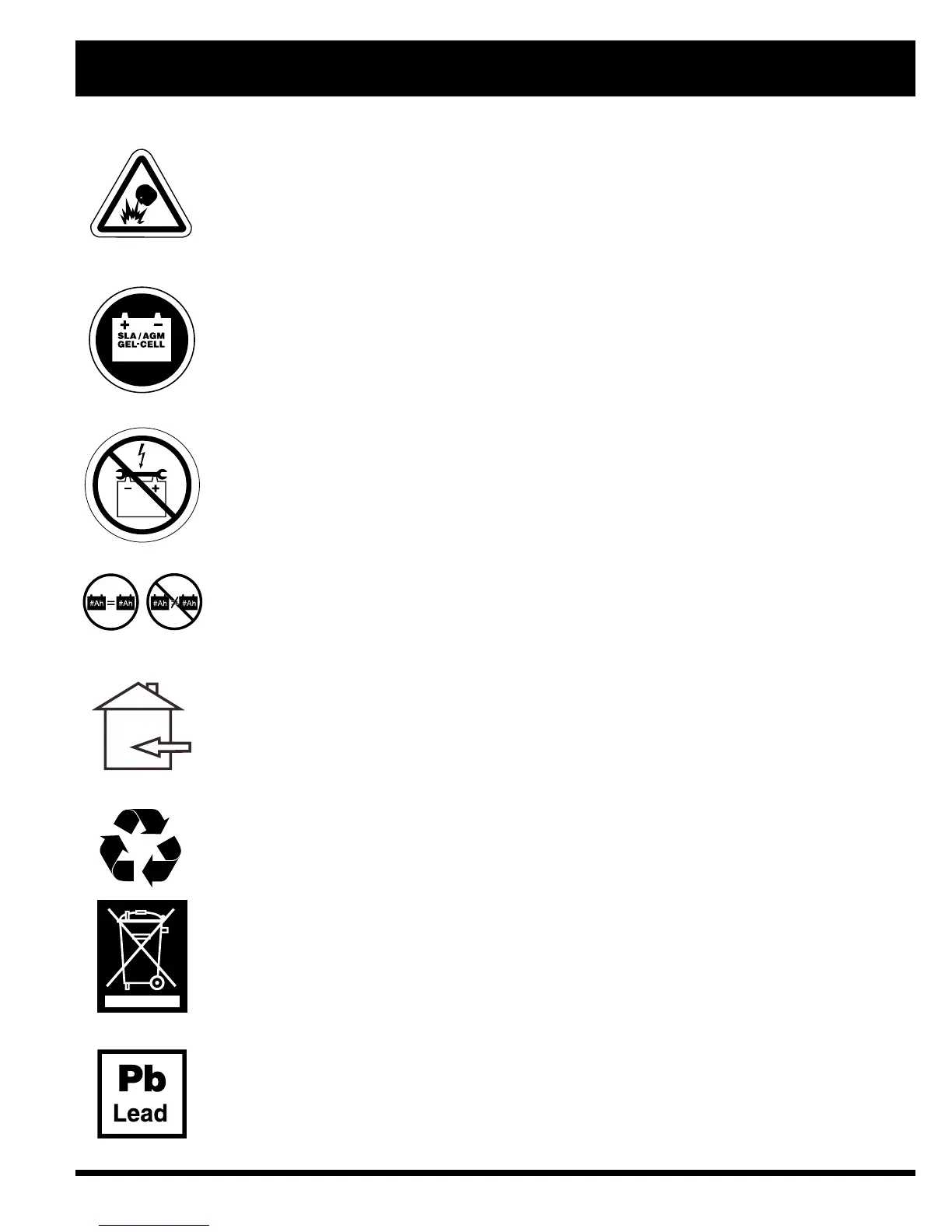 Use only AGM or Gel-Cell batteries to reduce the risk of leakage or explosive conditions.