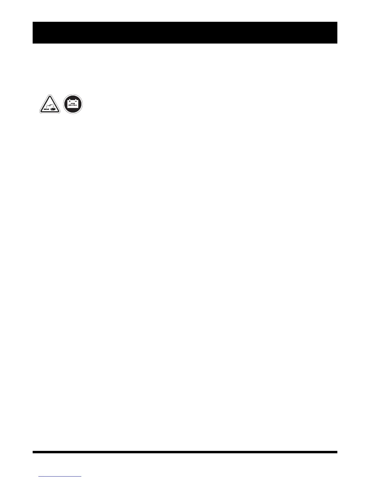 WARNING! Corrosive chemicals are contained in batteries. Use only AGM or Gel-