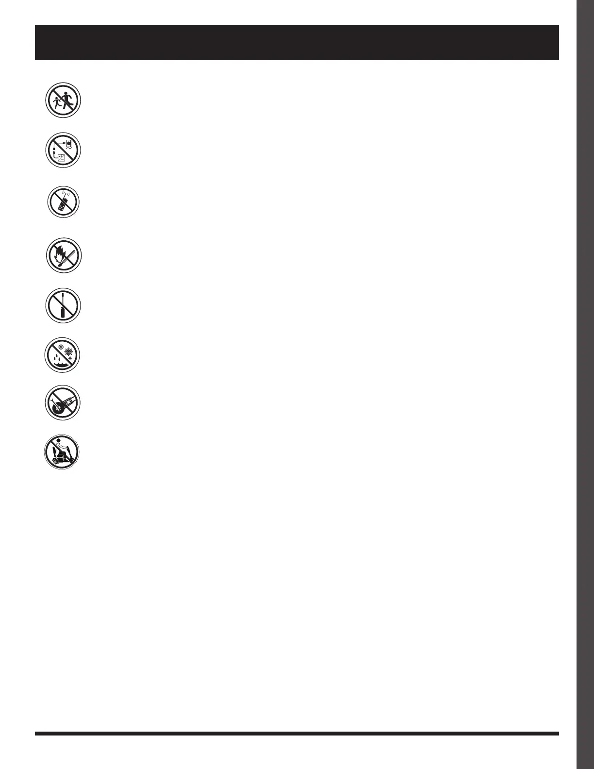 Garder les mains, les vêtements et tout autre objet à l’écart des roues lors de la conduite. Ne