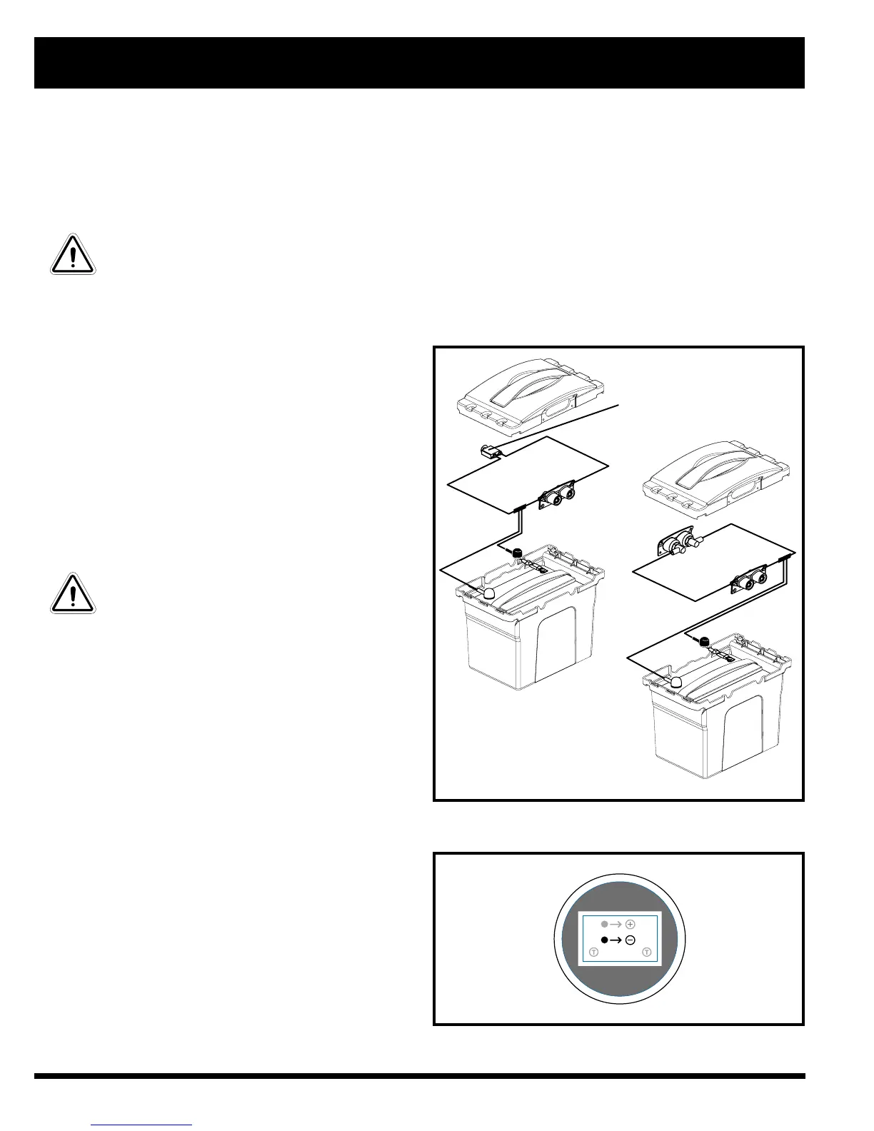 A battery wiring diagram is printed on a decal located inside the battery box lid. See VI. Batteries and Charging for