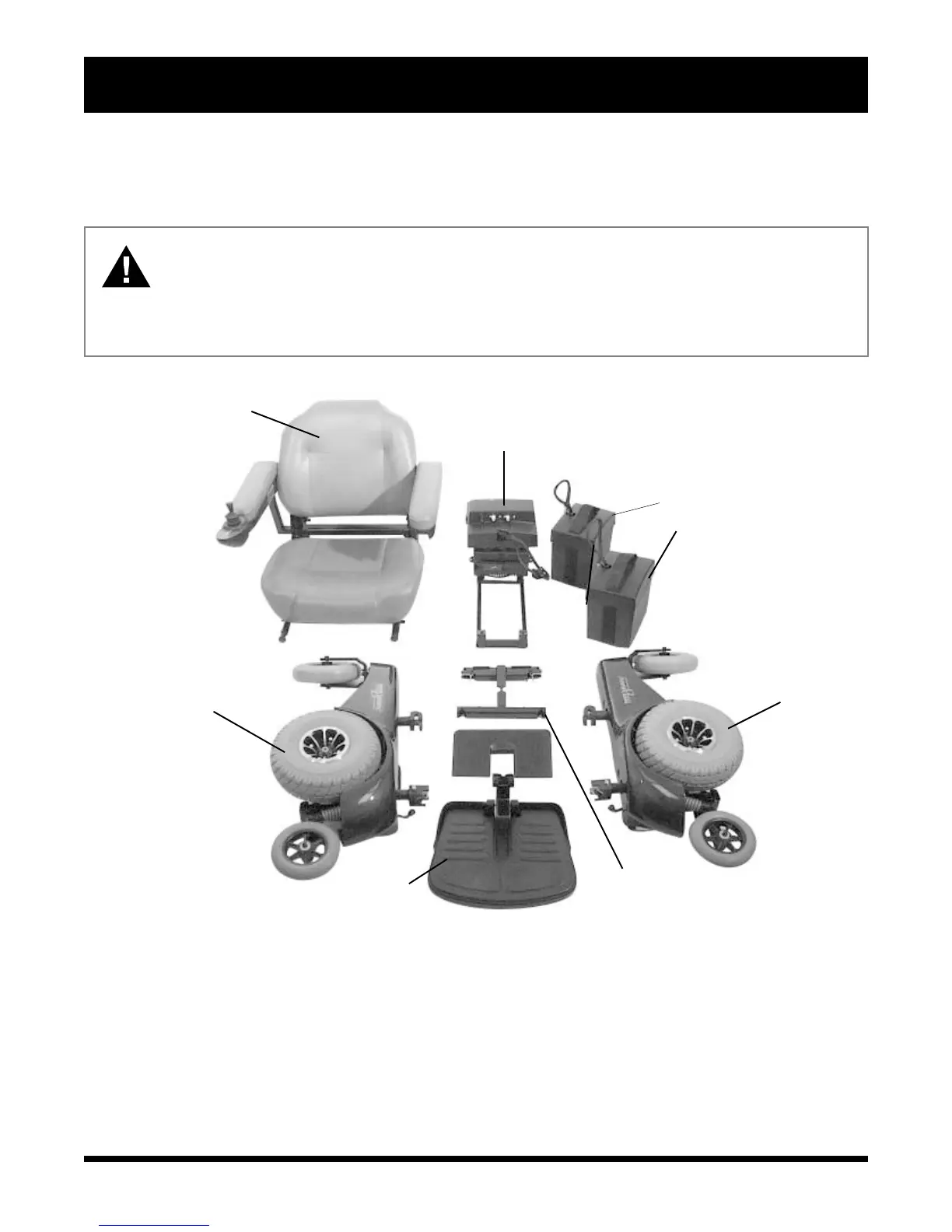 WARNING! Some power chair components are heavy. You may need assistance to lift or carry