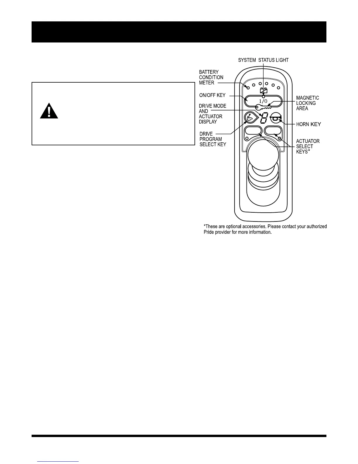 magnetic key supplied with your power chair. If you lose this key,