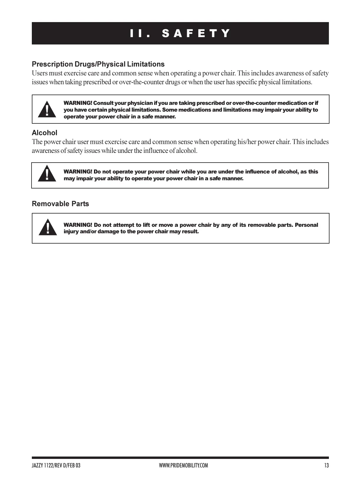 JAZZY 1122/REV D/FEB 03 WWW.PRIDEMOBILITY.COM 13