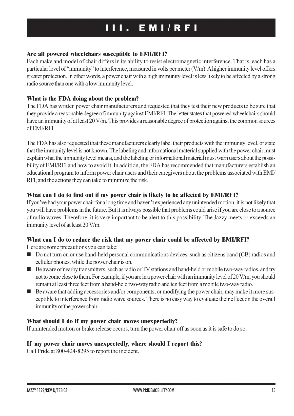 JAZZY 1122/REV D/FEB 03 WWW.PRIDEMOBILITY.COM 15