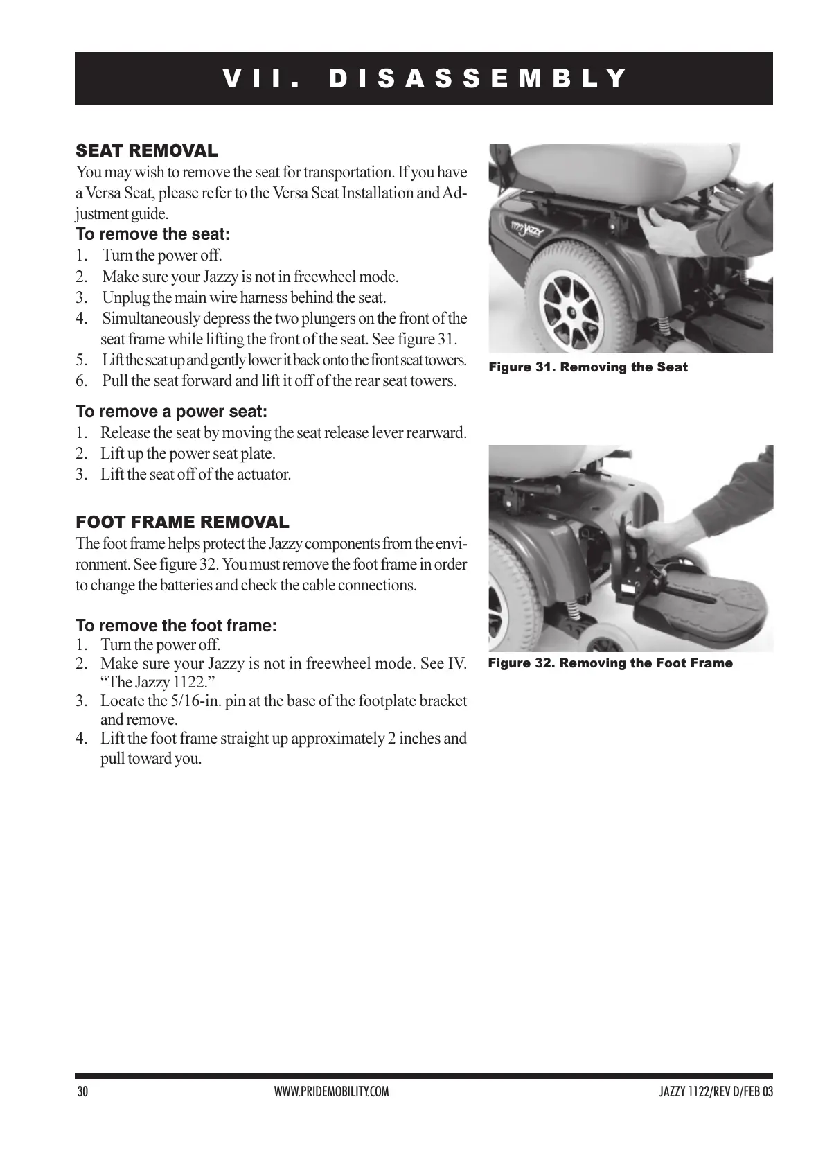 30 WWW.PRIDEMOBILITY.COM JAZZY 1122/REV D/FEB 03
