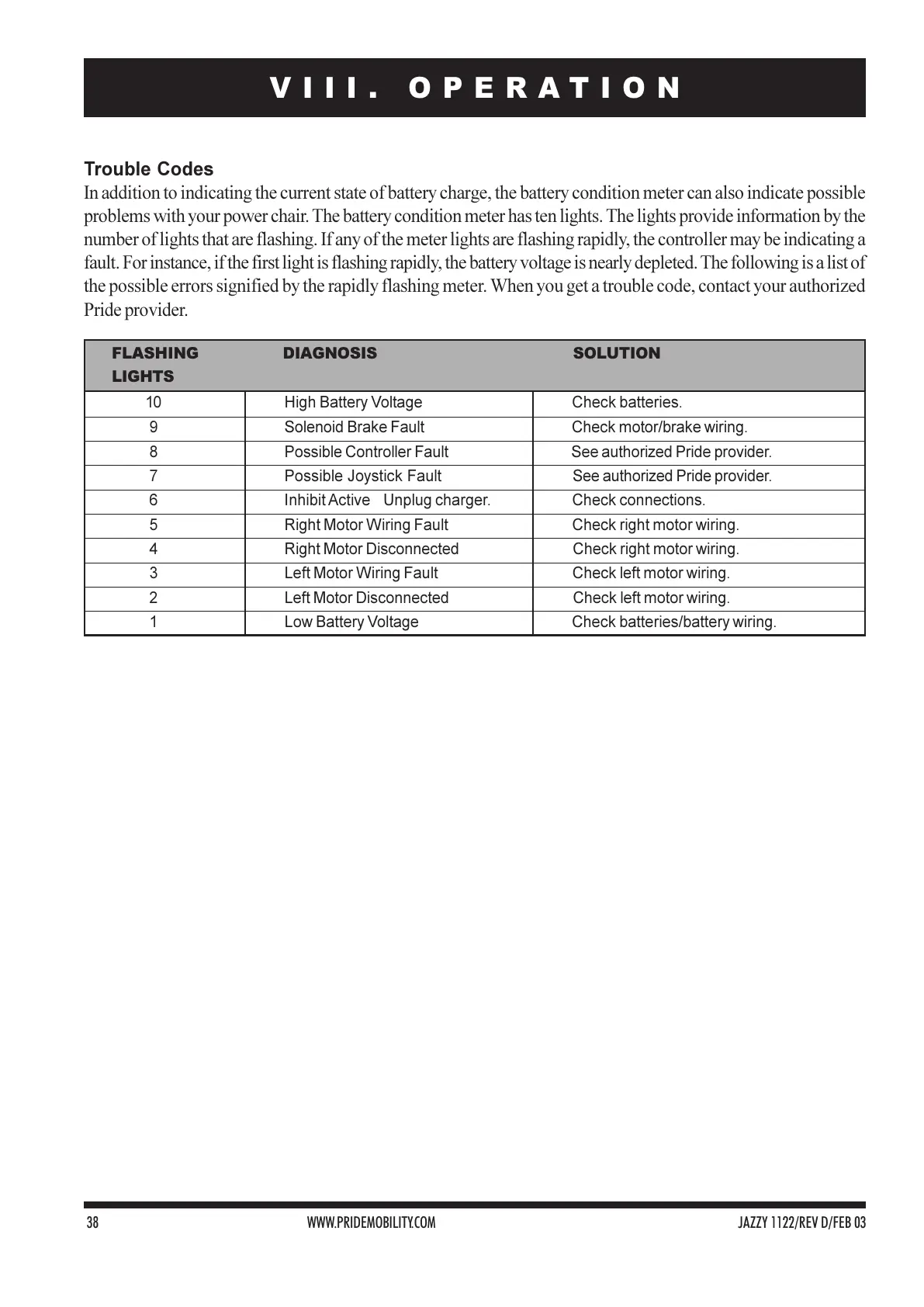 38 WWW.PRIDEMOBILITY.COM JAZZY 1122/REV D/FEB 03