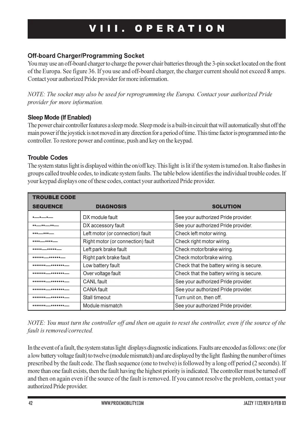 42 WWW.PRIDEMOBILITY.COM JAZZY 1122/REV D/FEB 03