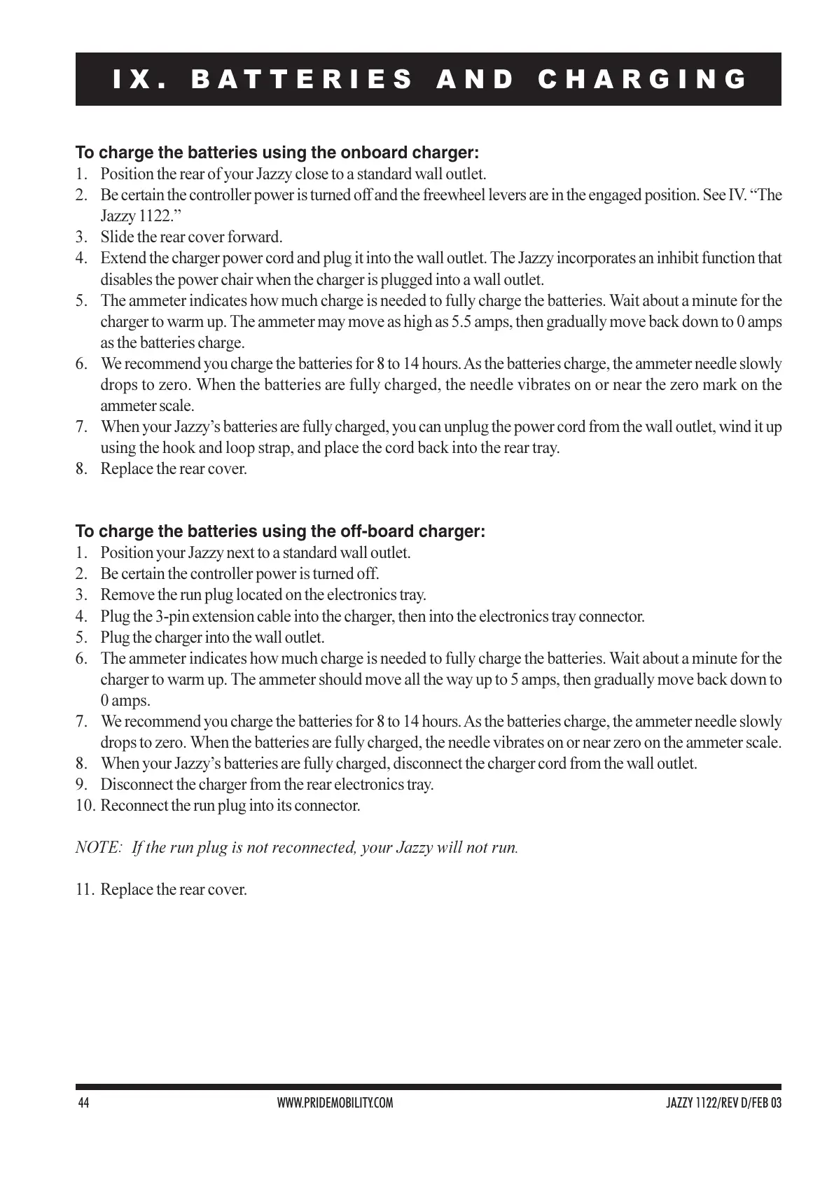 44 WWW.PRIDEMOBILITY.COM JAZZY 1122/REV D/FEB 03