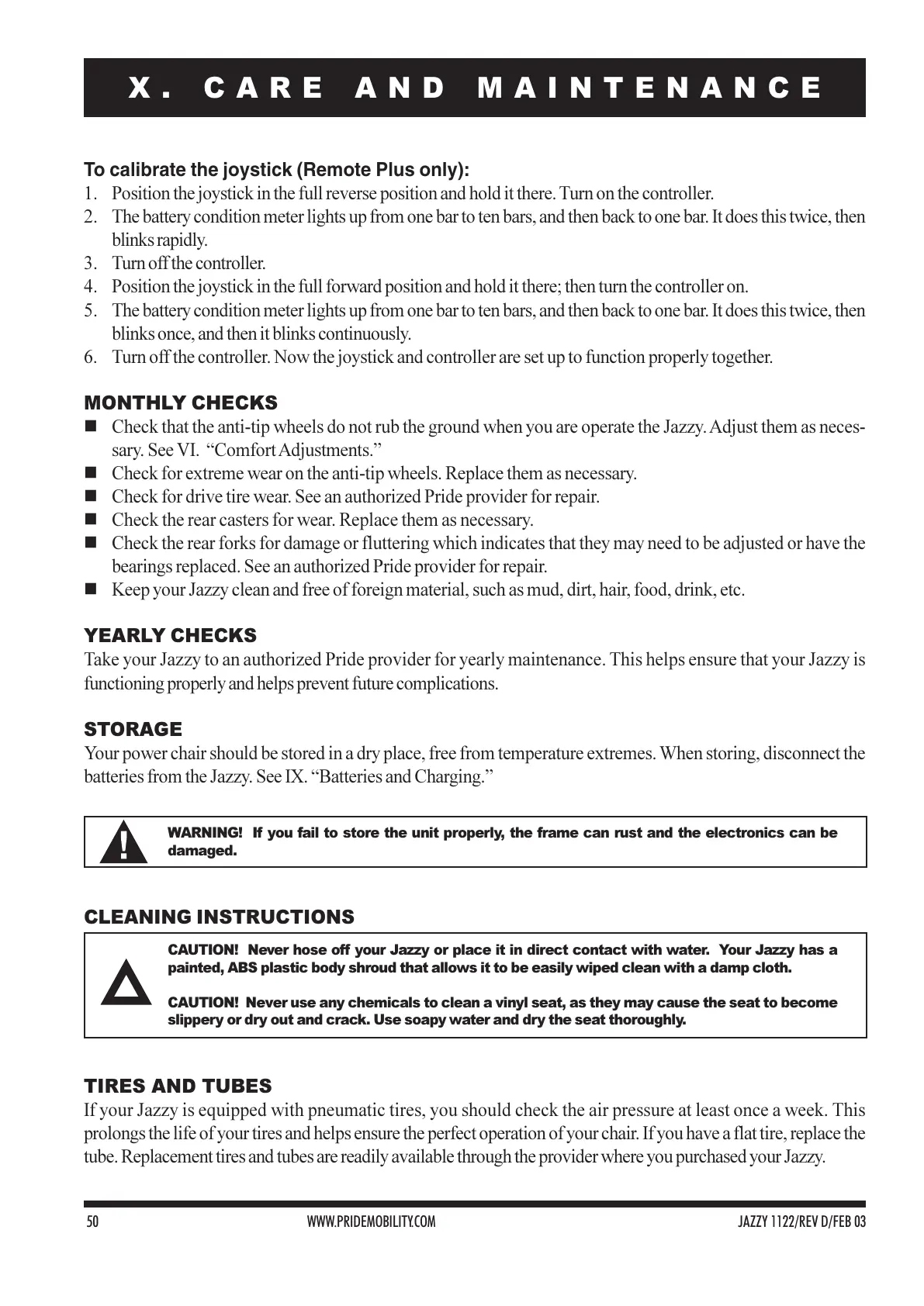 50 WWW.PRIDEMOBILITY.COM JAZZY 1122/REV D/FEB 03