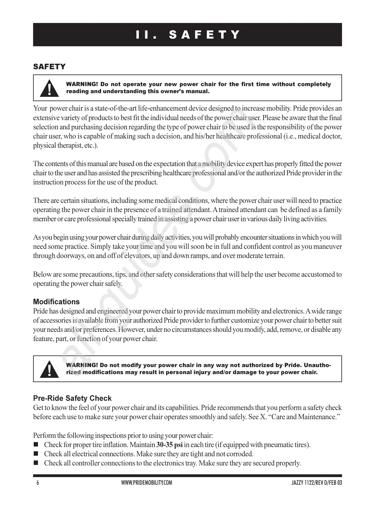 6 WWW.PRIDEMOBILITY.COM JAZZY 1122/REV D/FEB 03