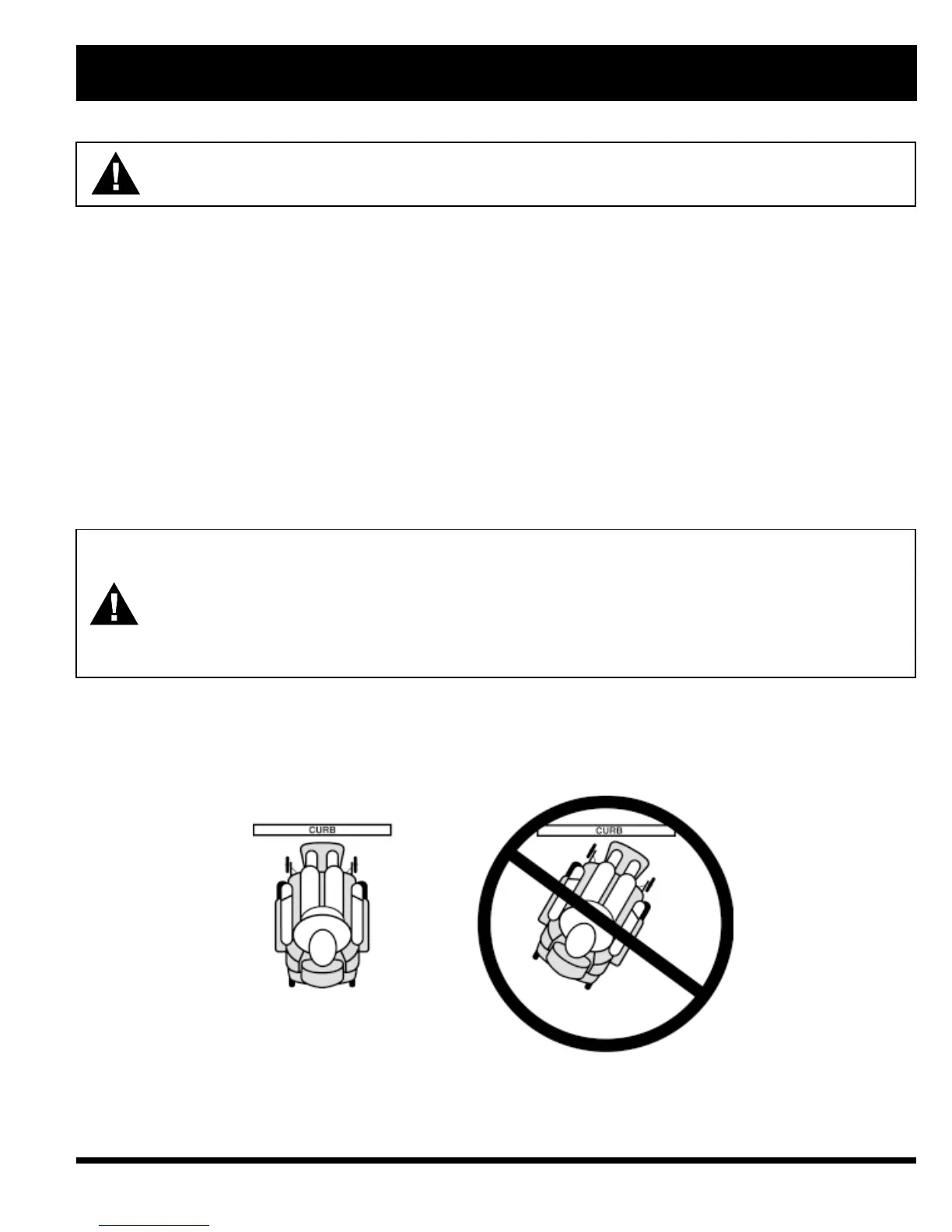 Proceed with extreme caution when driving near raised surfaces, unprotected ledges and/or drop-offs (curbs, porches,