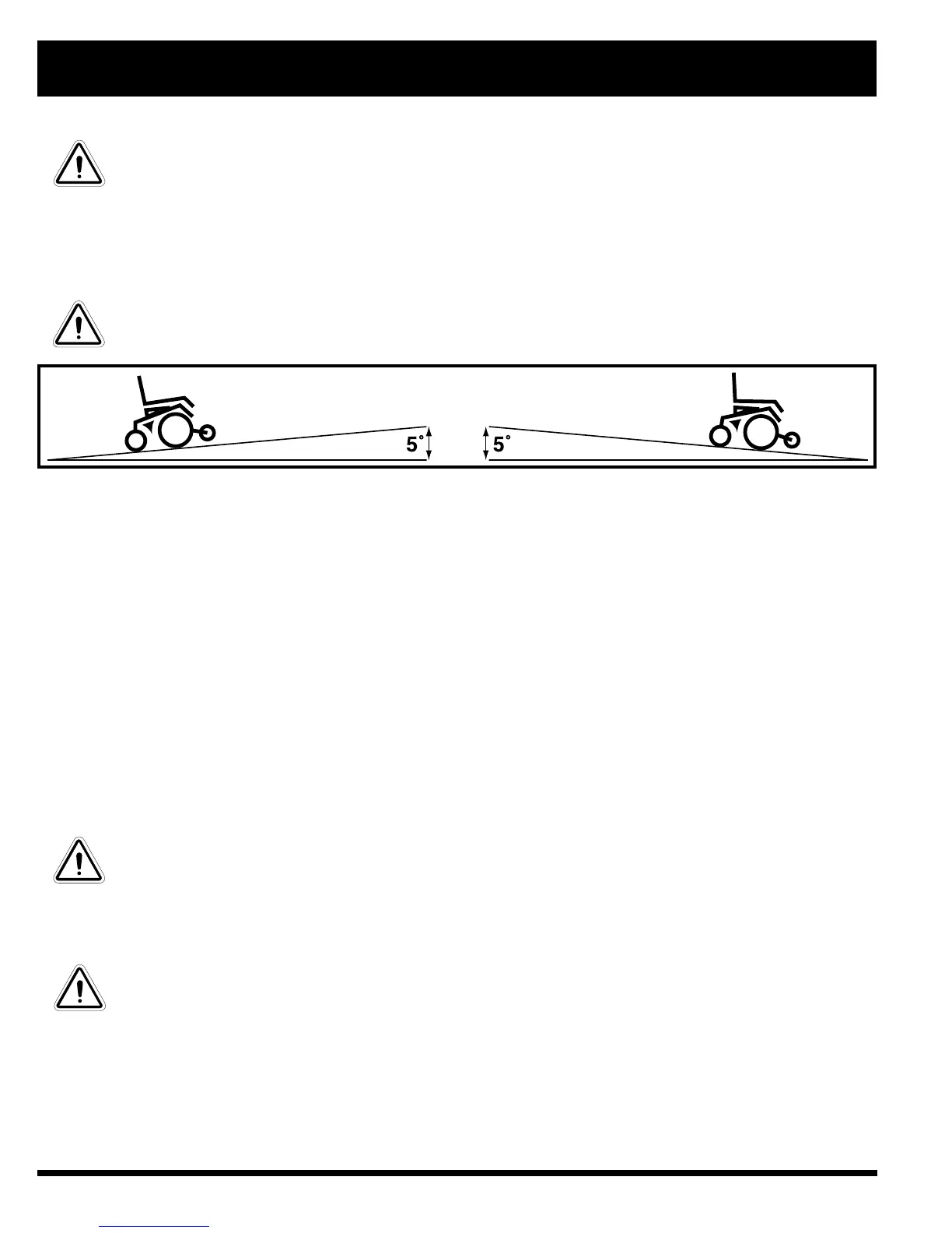 WARNING! Any attempt to climb or descend a slope steeper than 5° may put your power chair in