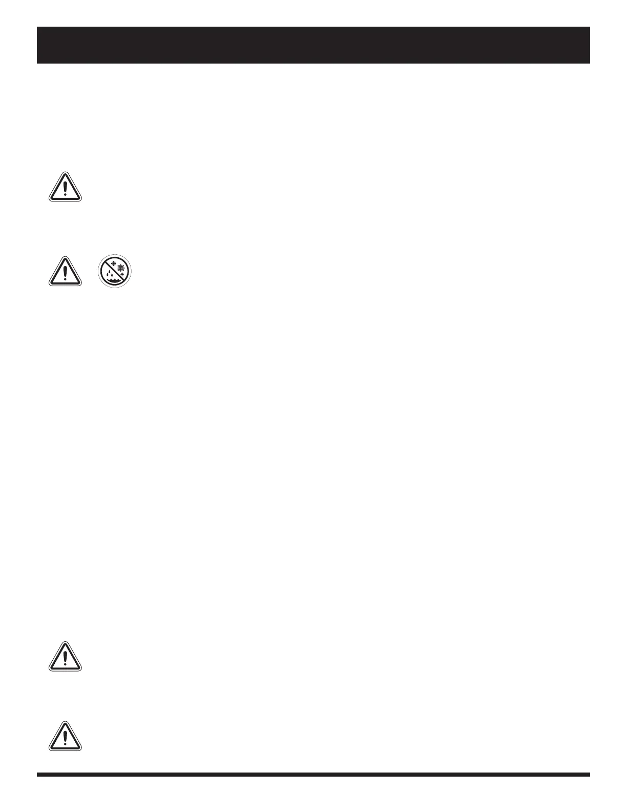 WARNING! Direct or prolonged exposure to water or dampness could cause the power