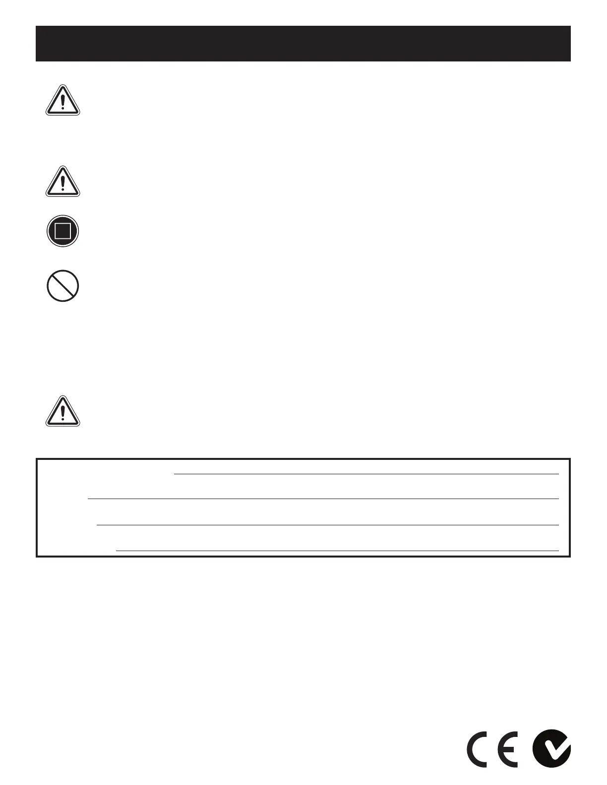 time or in any circumstances. Performing a prohibited action can cause personal injury and/or