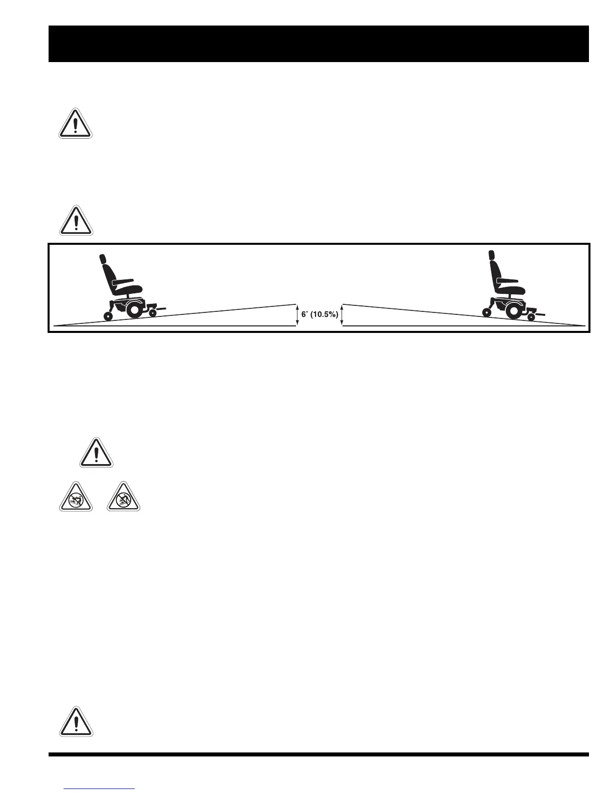 WARNING! Any attempt to climb or descend a slope steeper than 6° (10.5%) may put your power