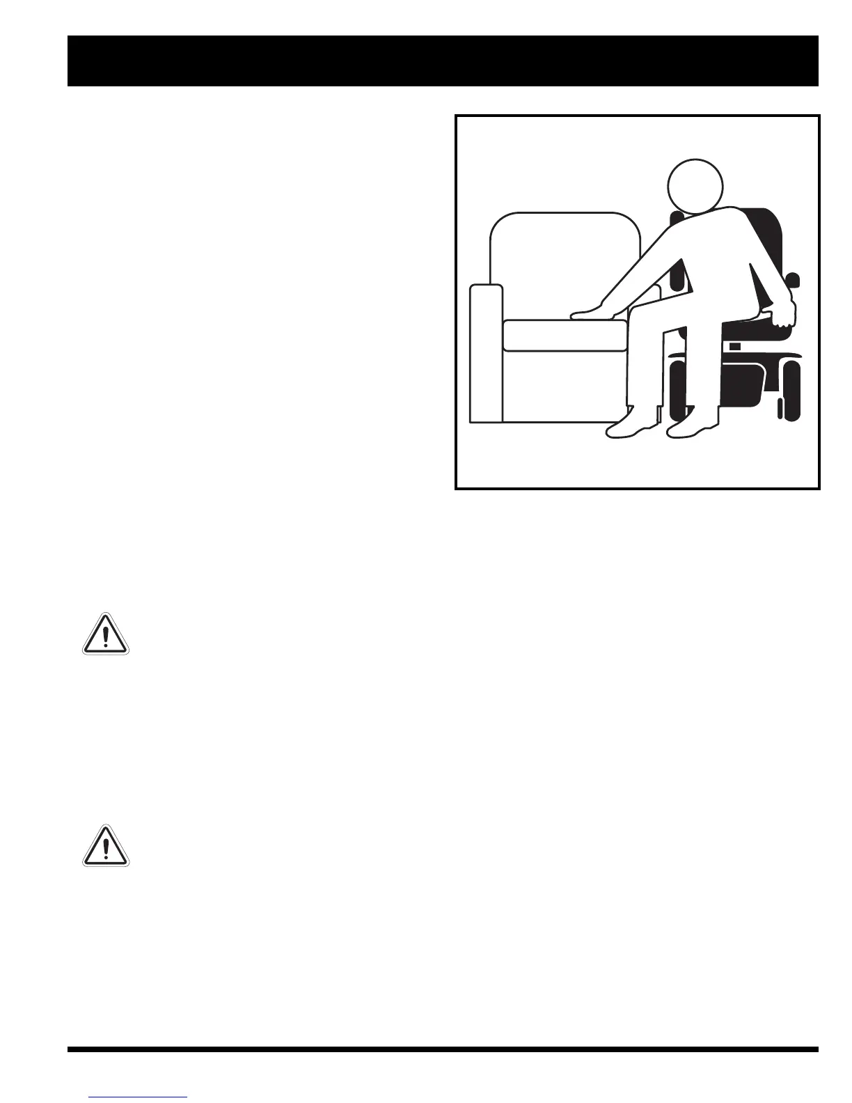 WARNING! Before transferring, position yourself as far back as possible in the power chair seat