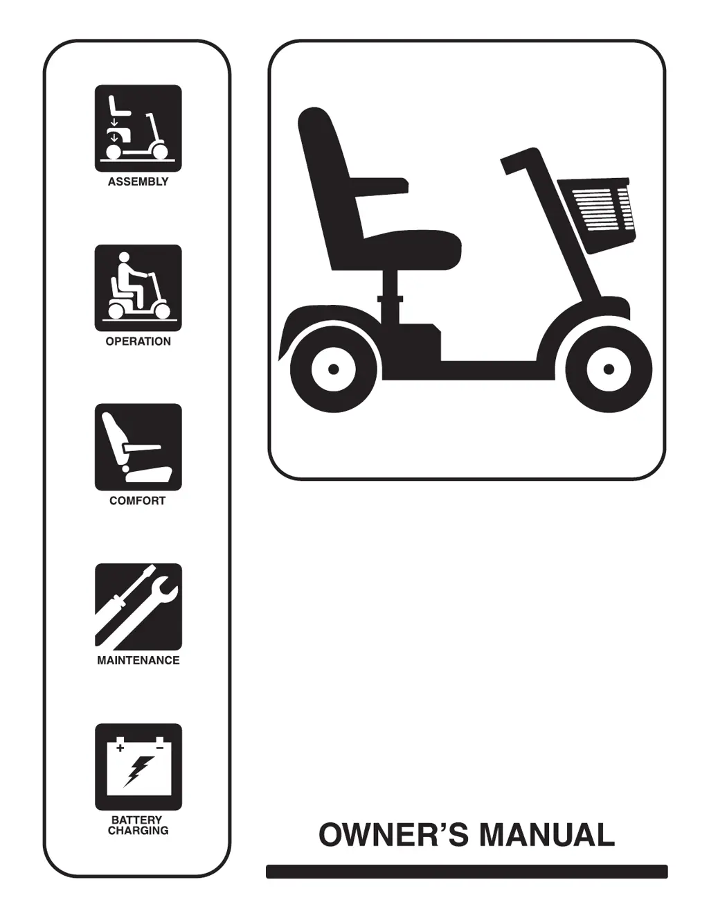 If all systems on your Travel Scooter appear to be dead, ensure the key is in the “on” position and that the batteries are fully charged. Also, push in the main circuit breaker reset button and check that the battery pack is seated properly. For models 36, 83, and 84, make certain that the battery and front-to-rear harnesses are connected properly. Be sure the power down timer feature has not been activated and check the tiller console fuse located under the battery pack.