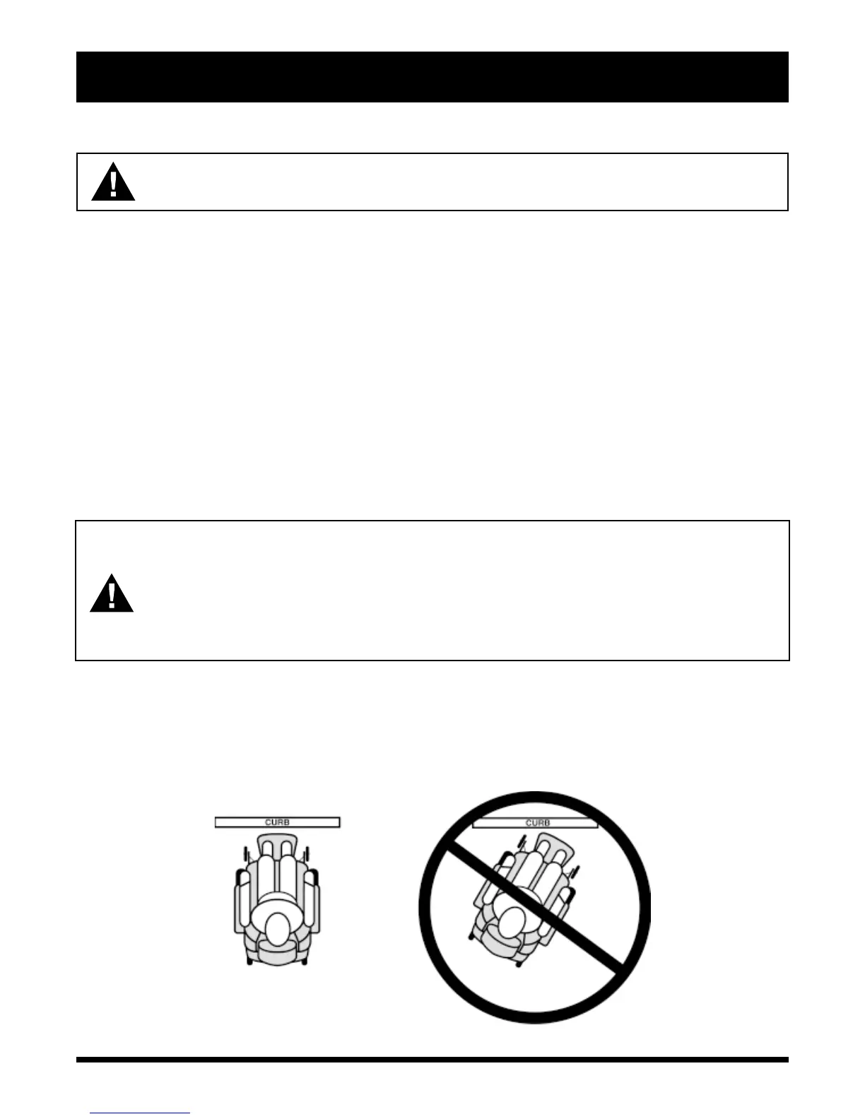 Proceed with extreme caution when driving near raised surfaces, unprotected ledges and/or drop-offs (curbs,