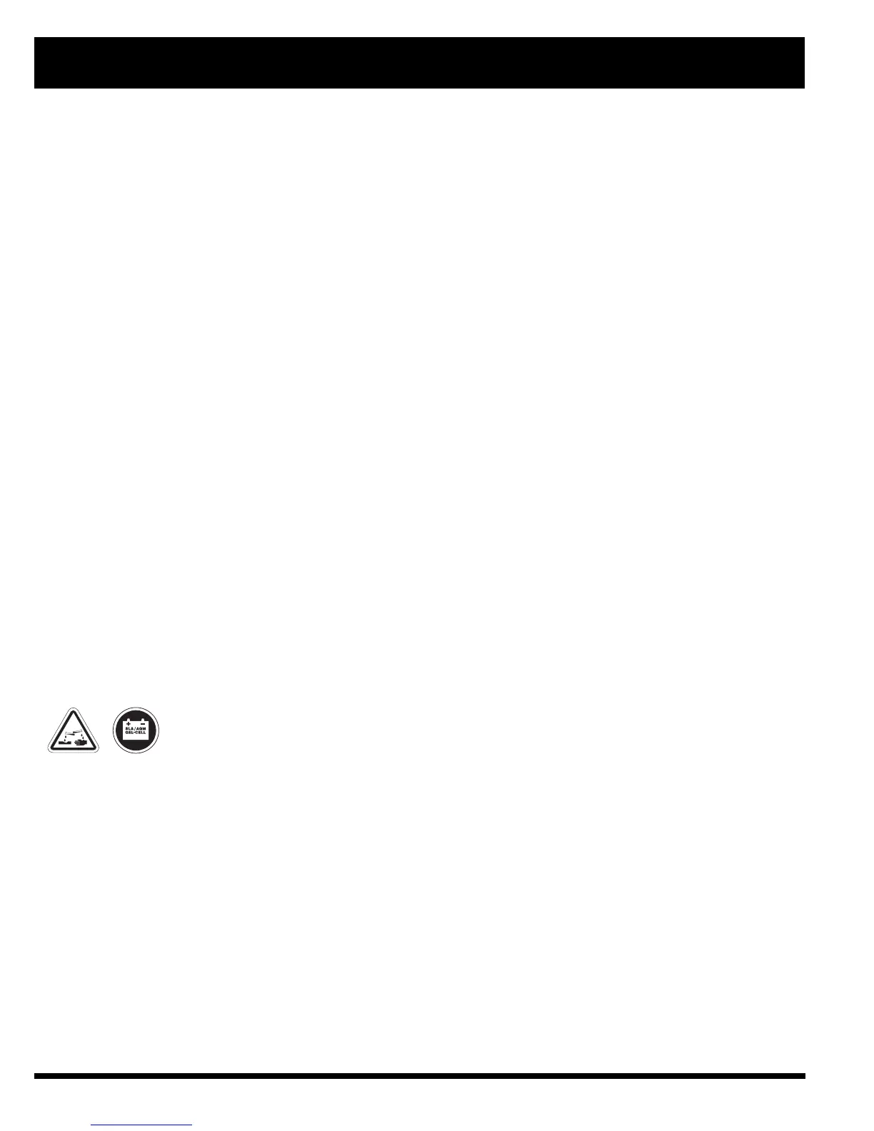 WARNING! Corrosive chemicals contained in batteries. Use only AGM or Gel-Cell