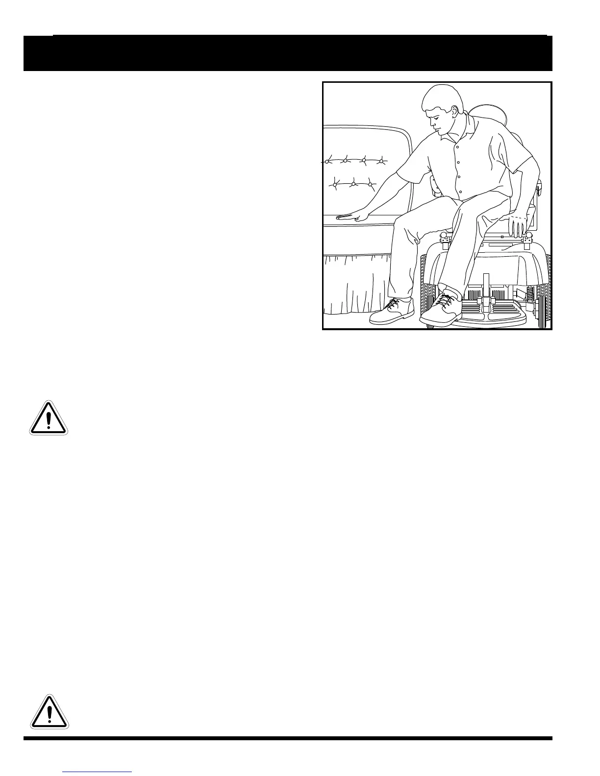 WARNING! Before transferring, position yourself as far back as possible in the power chair seat