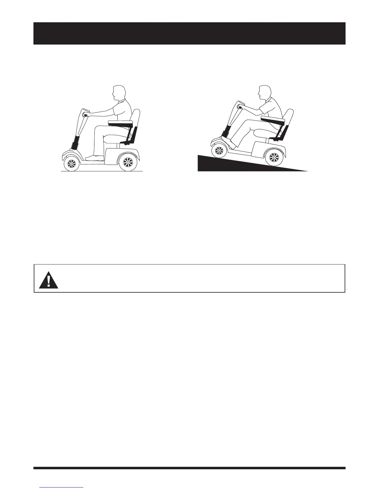 cornering speeds are not recommended. If you feel that you may tip over in a corner, reduce your speed and